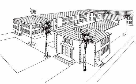 The city did not waste any time. A bond for $300,000 was approved by the voters, and a contract was given to the Howard E. Jones architectural firm to prepare plans for a replacement building. On January 3, 1924, the San Bernardino Sun ran an article describing the plans for a two-story building that would have 42 rooms. The building was to be an "L" shaped structure with one end fronting the west side of E Street, and the other end the south side of Eighth Street. The architects provided the Board with two optional exterior designs, one classical and the other Spanish or Mission. The 1915 high school at Eighteenth and E Streets had been designed using the classical style of architecture, but the School Board later decided the overhanging lintels and facade of this structure were a hazard in earthquake country, and they tore out the objectionable features and rebuilt the roofs. It was probably with this in mind that the school directors opted for the Spanish design.